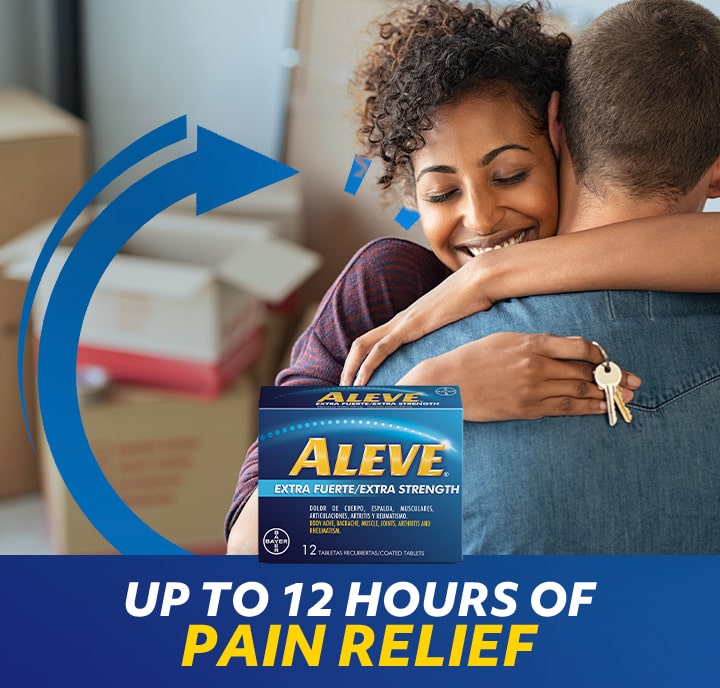 Two Aleve® has proven to provide long lasting pain relief for up to 12 hours.
