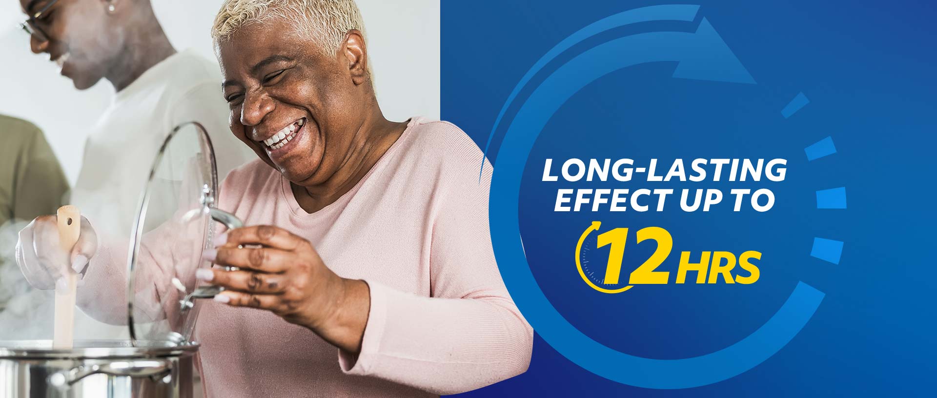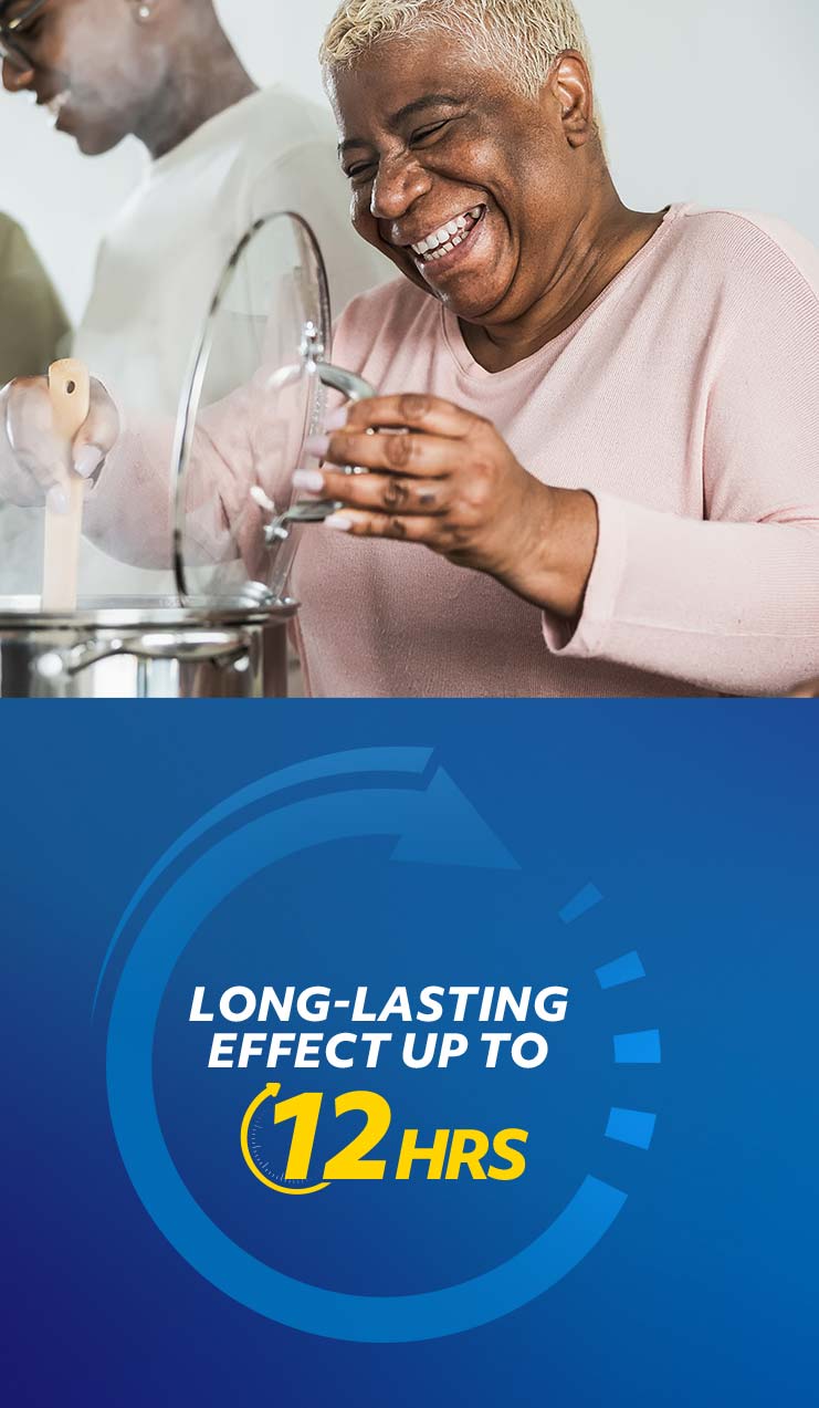 Fast and long lasting relief of body aches and backache. Prolonged effect for up to 12 hours.